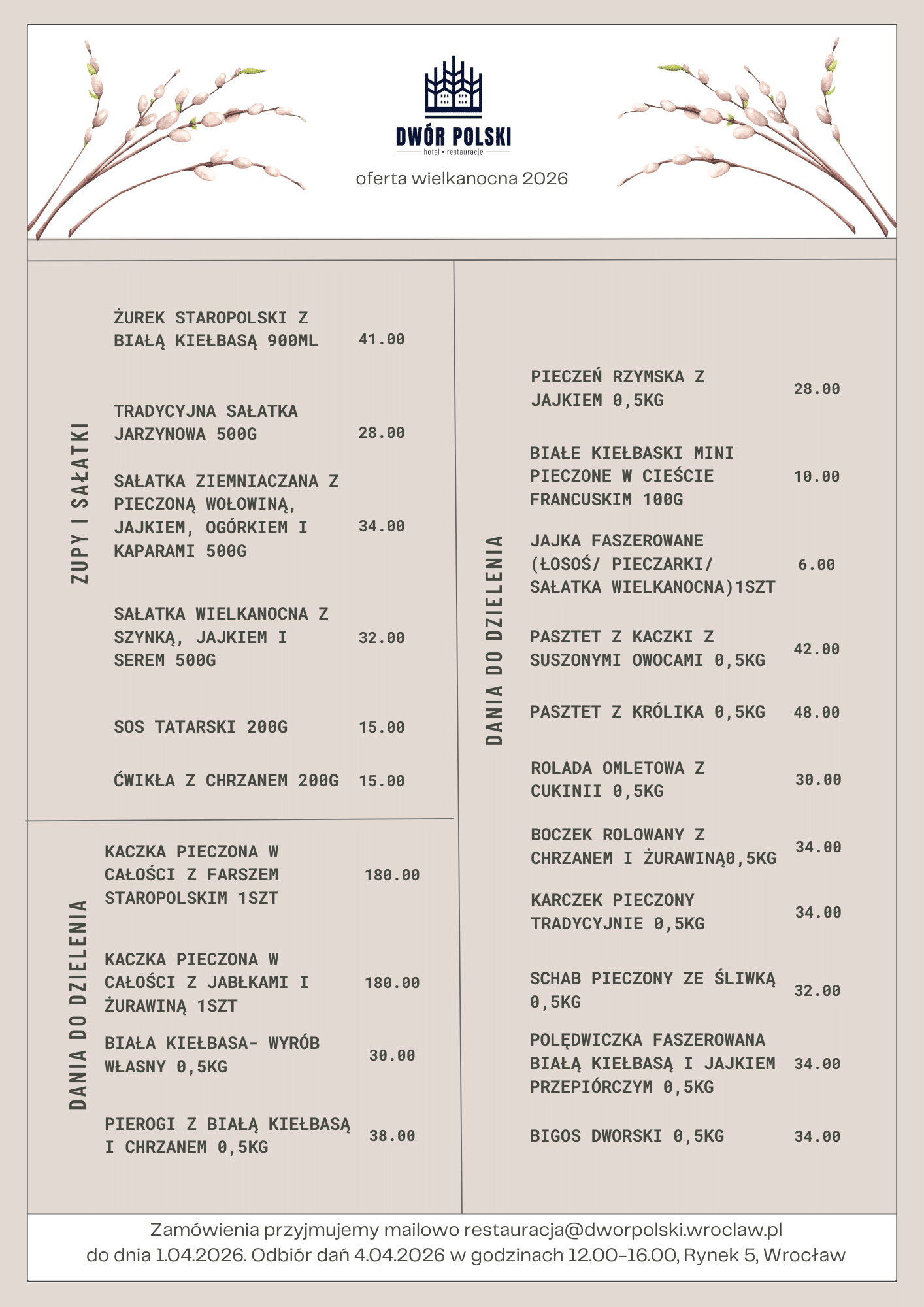 Jak co roku przygotowaliśmy da Państwa ofertę dań na wynos, łatwych i wygodnych do przygotowania w domu.